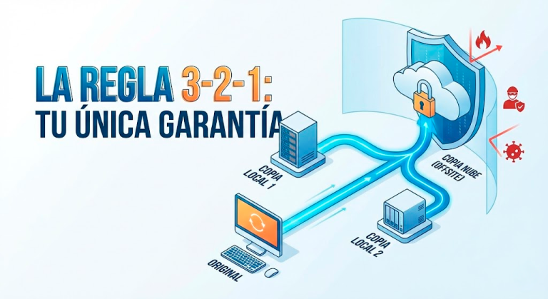 Para minimizar el riesgo de pérdida de datos, los profesionales de sistemas aplicamos una metodología de redundancia conocida como la Regla 3-2-1. No es un producto, es un protocolo lógico.