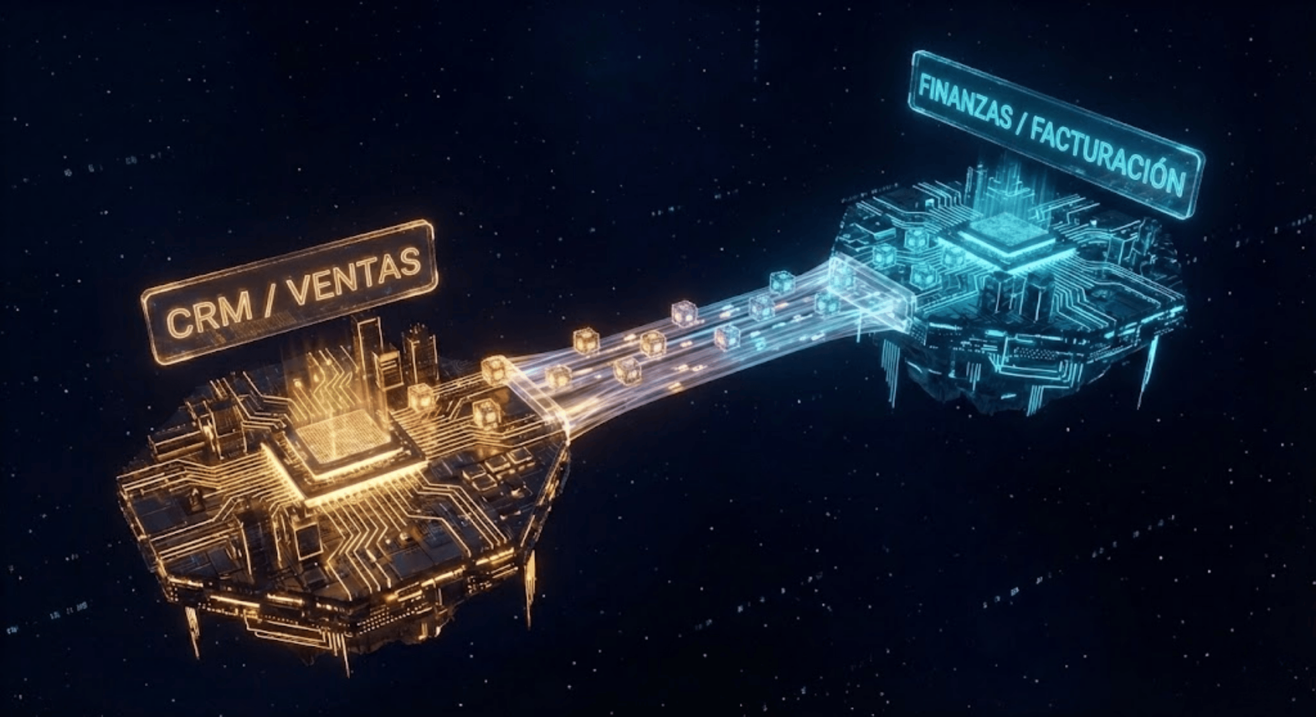Tu equipo de ventas vive en una isla llamada CRM (Salesforce, HubSpot, Pipedrive). Tu equipo de administración vive en otra isla llamada ERP/Facturación (Sage, Holded, Factusol). Y tu almacén vive en otra isla distinta. ¿El problema? Que estas islas no tienen puentes. Para pasar información de una a otra, usas «barcas de remos»: empleados copiando […]